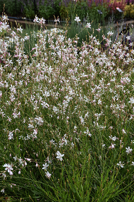 Sparkle White Gaura will grow to be about 24 inches tall at maturity, with a spread of 30 inches. When grown in masses or used as a bedding plant, individual plants should be spaced approximately 24 inches apart. Its foliage tends to remain dense right to the ground, not requiring facer plants in front. It grows at a fast rate, and under ideal conditions can be expected to live for approximately 8 years. As an herbaceous perennial, this plant will usually die back to the crown each winter, and will regrow from the base each spring. Be careful not to disturb the crown in late winter when it may not be readily seen!