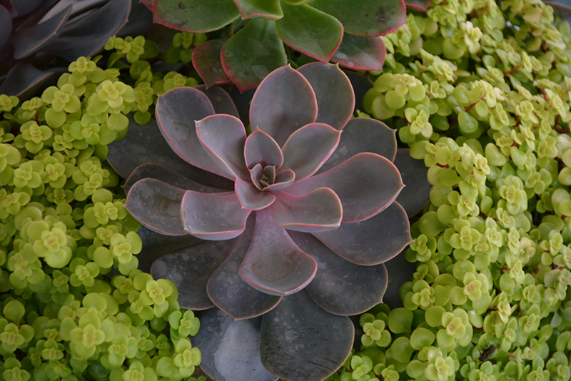 Perle Von Nurnberg Echeveria is a fine choice for the garden, but it is also a good selection for planting in outdoor pots and containers. It is often used as a 'filler' in the 'spiller-thriller-filler' container combination, providing a mass of flowers and foliage against which the larger thriller plants stand out. Note that when growing plants in outdoor containers and baskets, they may require more frequent waterings than they would in the yard or garden.