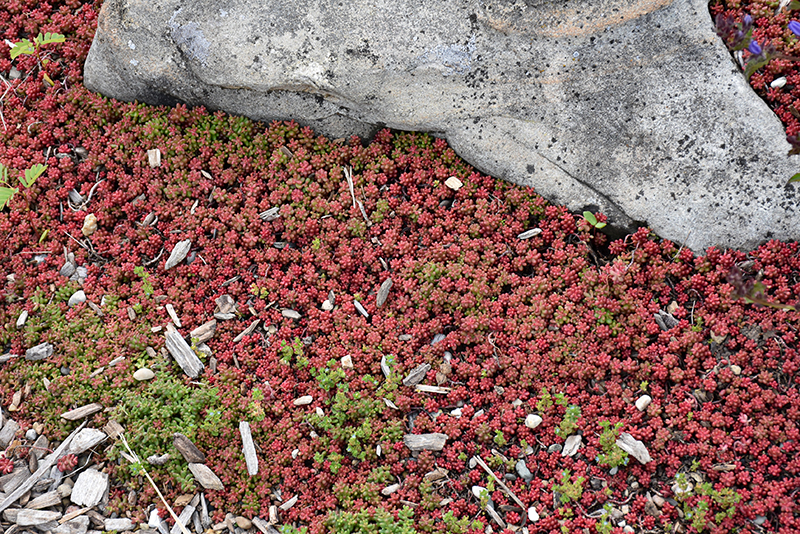 Coral Carpet Stonecrop will grow to be only 3 inches tall at maturity extending to 8 inches tall with the flowers, with a spread of 18 inches. When grown in masses or used as a bedding plant, individual plants should be spaced approximately 15 inches apart. Its foliage tends to remain low and dense right to the ground. It grows at a fast rate, and under ideal conditions can be expected to live for approximately 15 years. As an evegreen perennial, this plant will typically keep its form and foliage year-round.