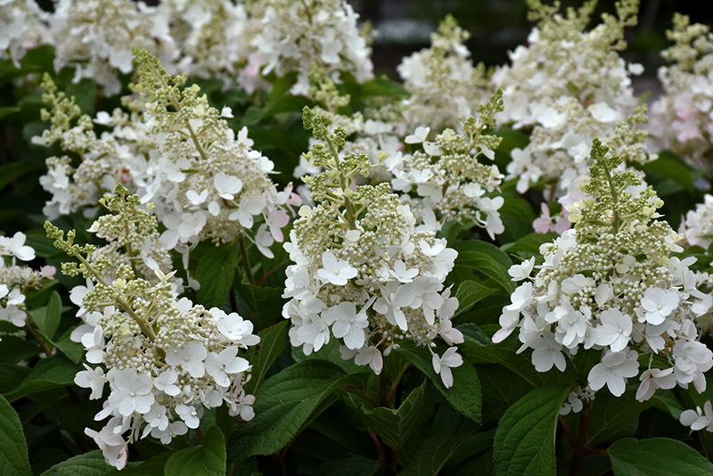 Candelabra™ Hydrangea features bold conical white flowers with pink overtones at the ends of the branches from mid summer to late fall. The flowers are excellent for cutting. It has green deciduous foliage. The pointy leaves do not develop any appreciable fall color. The smooth gray bark and dark red branches add an interesting dimension to the landscape.
