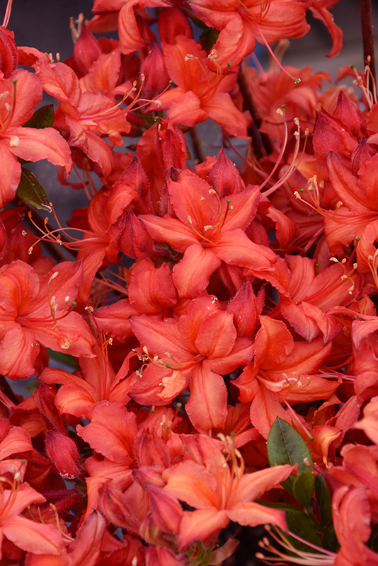 Electric Lights™ Red Azalea is smothered in stunning clusters of fragrant red trumpet-shaped flowers at the ends of the branches from mid to late spring before the leaves. It has forest green deciduous foliage which emerges light green in spring. The glossy oval leaves do not develop any appreciable fall color.