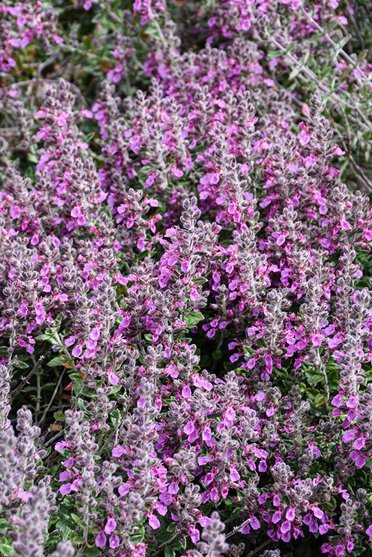 Creeping Germander features delicate spikes of purple flowers rising above the foliage from mid to late summer. Its glossy narrow leaves remain green in color throughout the year.