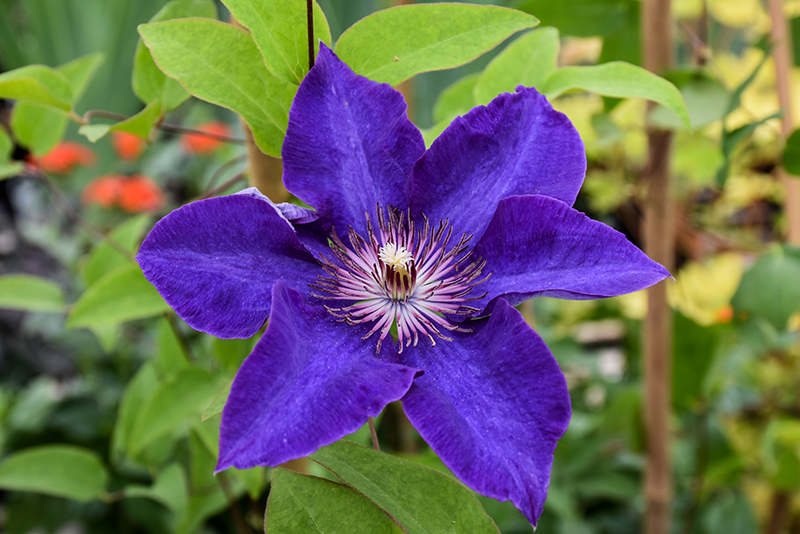 One of the longest-blooming flowering vines, with gigantic rich purple-blue flowers from early summer through to the first fall frosts; an older heritage variety that commands attention with its remarkable flowers