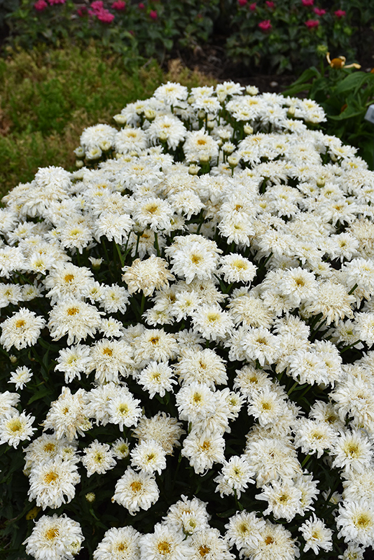Amazing Daisies® Marshmallow Shasta Daisy has masses of beautiful fully double white daisy flowers with gold eyes at the ends of the stems from early to late summer, which emerge from distinctive buttery yellow flower buds, and which are most effective when planted in groupings. The flowers are excellent for cutting. Its serrated narrow leaves remain dark green in color throughout the season.