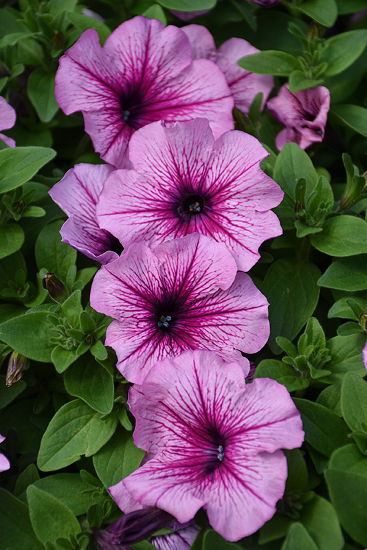 CannonBall™ Rose Vein Petunia is blanketed in stunning pink trumpet-shaped flowers with rose veins at the ends of the stems from mid spring to late summer. Its pointy leaves remain green in color throughout the season.