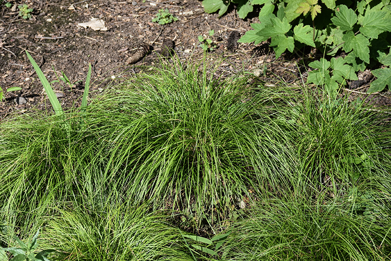 A weeping, perennial native sedge that forms graceful, mounded tufts of very fine textured, deep green, threadlike foliage; thrives in dry to mesic woods and does best with some shade; perfect for massing, slopes, or as a shade groundcover