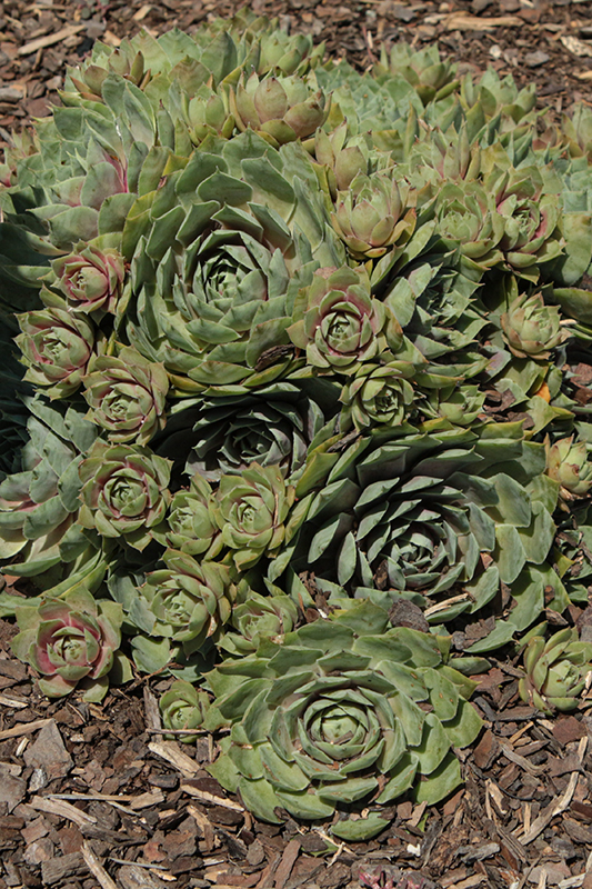 Chick Charms® GIANTS Glacier Blue™ Hens And Chicks will grow to be only 4 inches tall at maturity extending to 8 inches tall with the flowers, with a spread of 12 inches. When grown in masses or used as a bedding plant, individual plants should be spaced approximately 10 inches apart. Its foliage tends to remain low and dense right to the ground. It grows at a medium rate, and under ideal conditions can be expected to live for approximately 20 years. As an evegreen perennial, this plant will typically keep its form and foliage year-round.