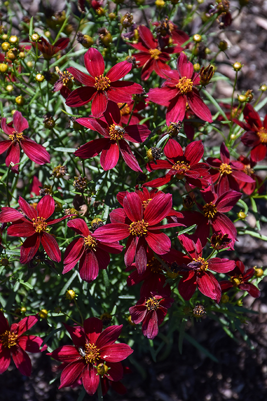 Designer Threads™ Scarlet Ribbons Tickseed is smothered in stunning burgundy daisy flowers at the ends of the stems from mid to late summer. The flowers are excellent for cutting. Its threadlike leaves remain emerald green in color throughout the season.