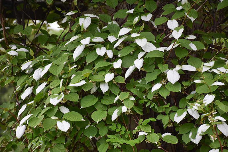 A male selection of this interesting vine valued for its breathtaking white-pink variegated foliage all season long, small white fragrant flowers, will not set fruit; an underutilized climber that's excellent for screening